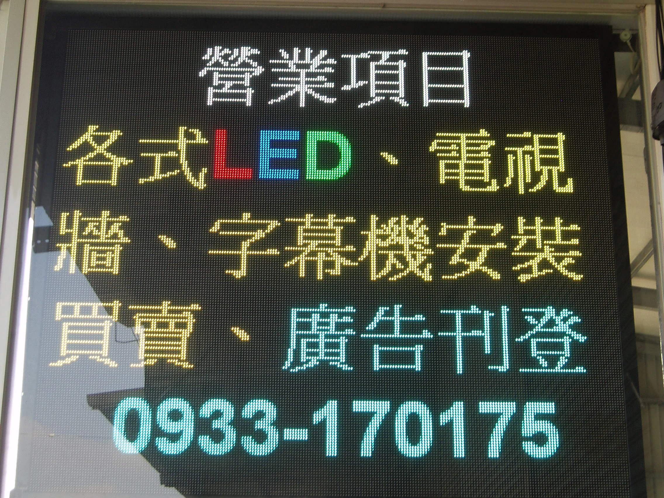 永勝光電有限公司LED字幕機買賣.安裝字幕機規格分為:P10.P12.P16.P20.P25~以上有這幾種規格分:戶外單色.雙色.全彩.半戶外燈板~這幾種~價格了解客戶需要的~才於客戶報價~